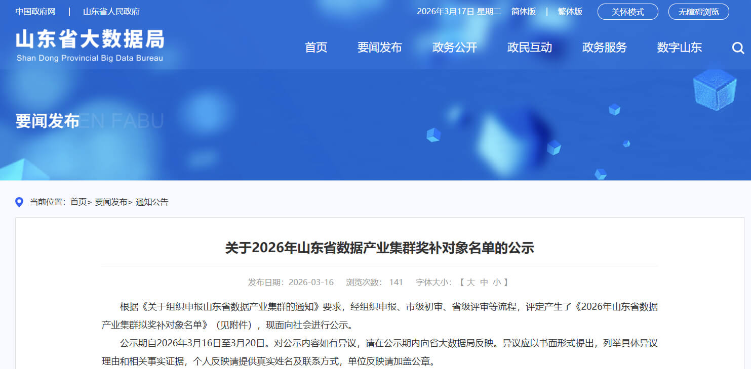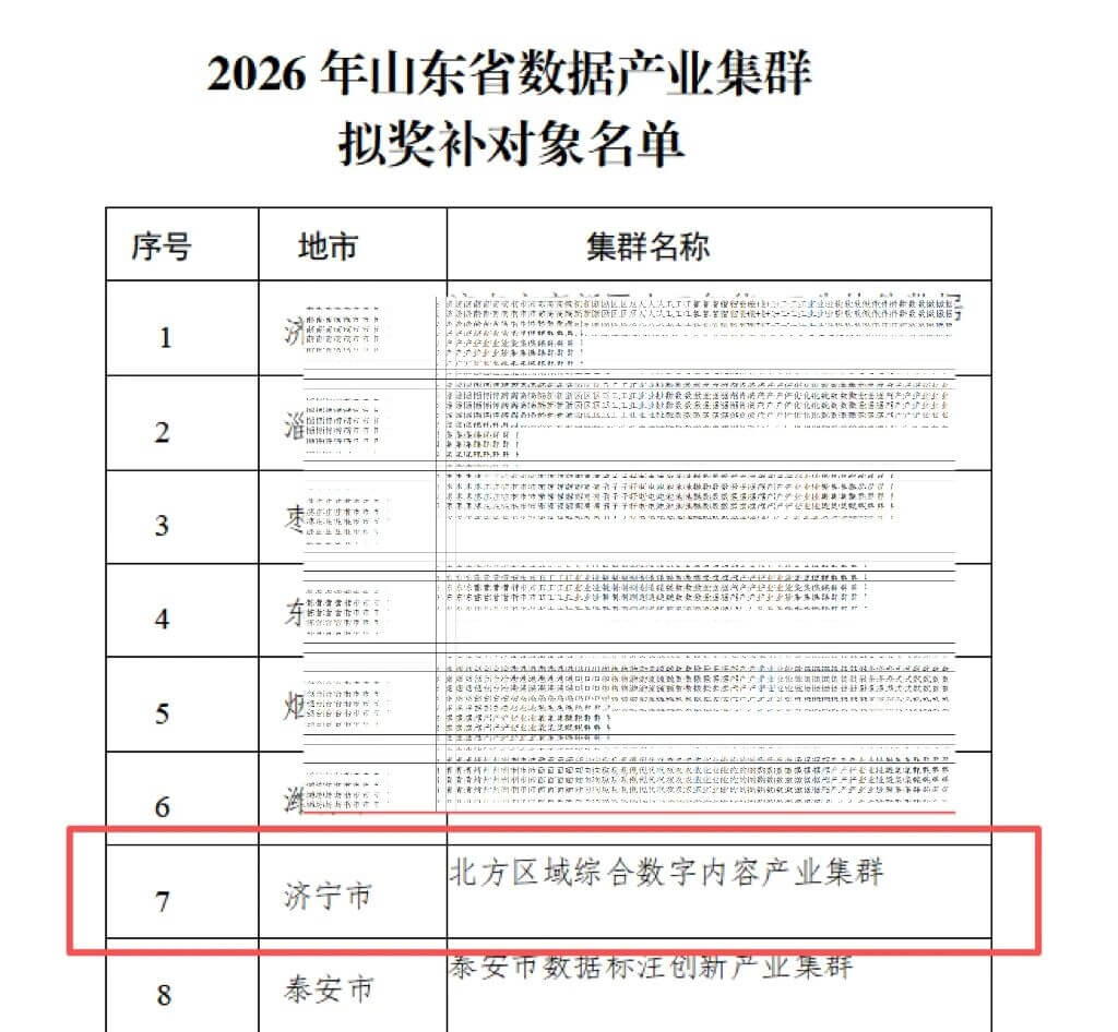 近日,融发重点打造的“北方区域综合数字内容产业集群”成功入选2026年山东省数据产业集群奖补支持名单。
