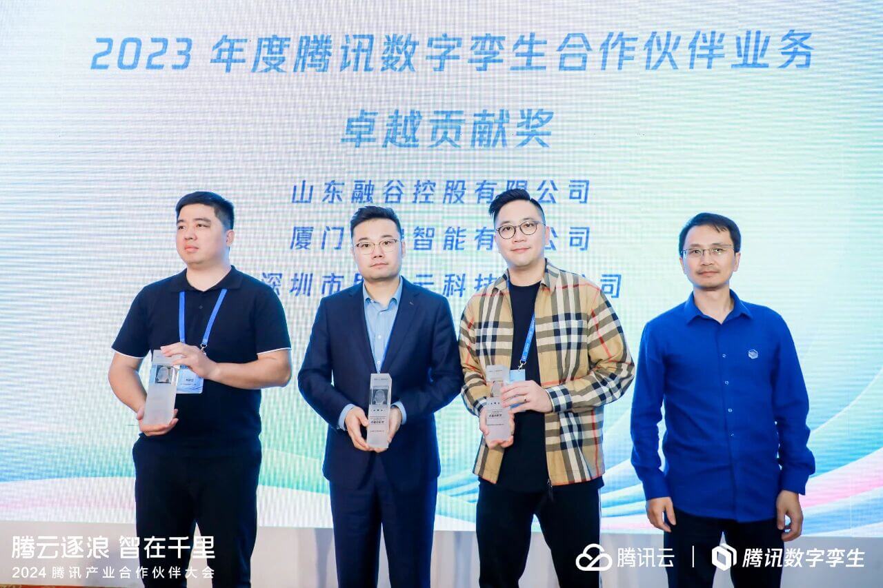 在大会现场,腾讯云副总裁王涛为山东融谷颁发“2023年度腾讯数字孪生合作伙伴业务卓越贡献奖”,表彰公司过去一年在数字孪生技术领域的卓越表现和突出贡献。
