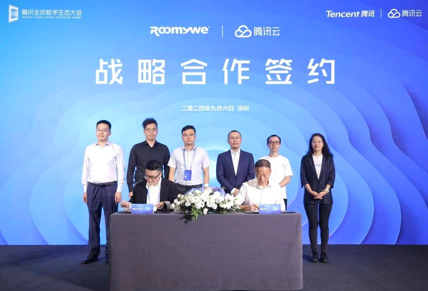 腾讯云副总裁张果、腾讯教育行业总经理杨晖、腾讯云产业生态合作部北区总经理赵小卓、腾讯数字孪生产品负责人朱亚娟、腾讯云泛政行业生态总经理朱银龙以及融谷控股总裁刘朋等出席并见证签约,融谷控股旗下信息公司总经理郭明敏与腾讯云产业生态合作部北区副总经理杨万桃代表各自公司签署战略合作。