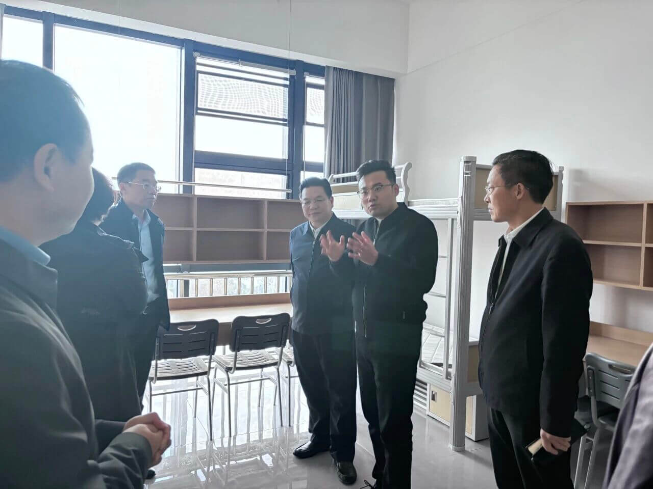 来访领导一行,对学生实训室、实战室以及住宿条件进行细致考察。在随后的座谈交流上,高书记对基地的教学水准和硬件设施给予了高度评价。他特别提到了“校政企”三方“共建产教融合基地新模式”,引入腾讯数字孪生、大数据应用等数字技术平台,共同打造一个区域数字化转型公共赋能平台,项目一期将实现2000人的数字人才引入,将为全市提供数字化人才培训和全周期的企业数字化转型服务。