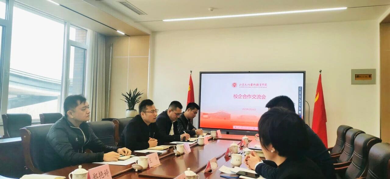 2025年2月26日,山东融发数字运营有限公司董事长刘朋、副总裁张振龙、产业生态中心总经理王申、产教融合中心副总经理王成忠、产教融合方案中心总监郑艳婷一行前往山东文化艺术职业学院围绕”双园融通、双境融合”的创新人才培养模式展开深度对话。山东文化艺术职业学院党委书记张东林、副院长王萌、教务与科研处负责人胡晓丽、艺术设计系负责人吕克、专任教师王晓宇等学院相关负责人出席座谈会。