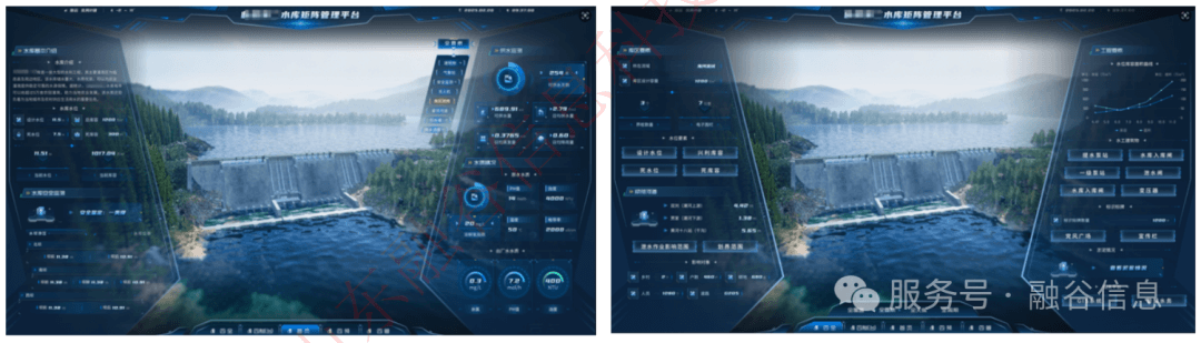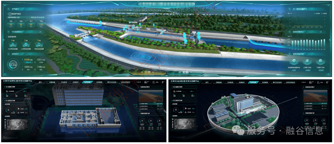基于地理信息系统,对江河湖泊流域、水库、电站、重要设备等管理要素的分布、范围、类型、状态等信息进行综合监测;融合水利管理各部门现有数据资源,对水文气象信息监测、调度业务管理、清洁能源、防洪等各业务领域的关键指标进行多维可视分析;通过三维建模,多种角度直观展示大坝主体、船闸、电 站机组、闸门泄水建筑物等重点管理对象的运行态势,实现水利管理综合运营态势一屏掌握。