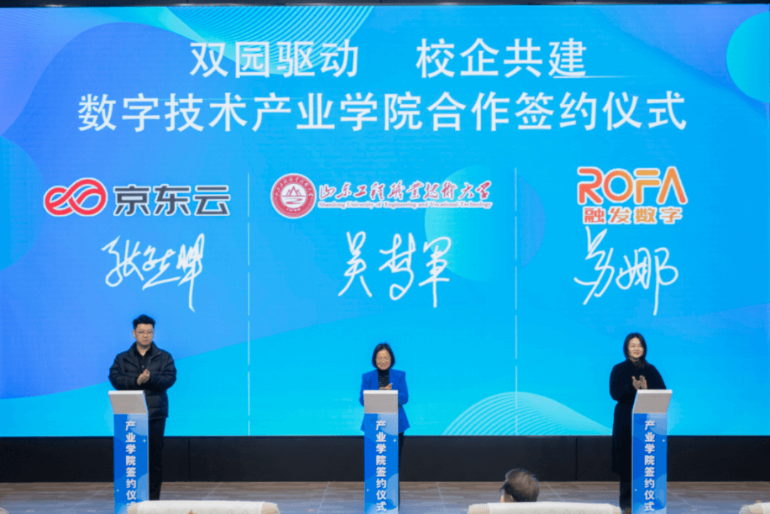 11月21日,山东融发数字运营有限公司与山东工程职业技术大学、京东科技举行数字技术产业学院签约仪式。三方共同签约,标志着政校企三方在协同育人、产业赋能领域达成深度共识,为数字经济高质量发展注入强劲动力。