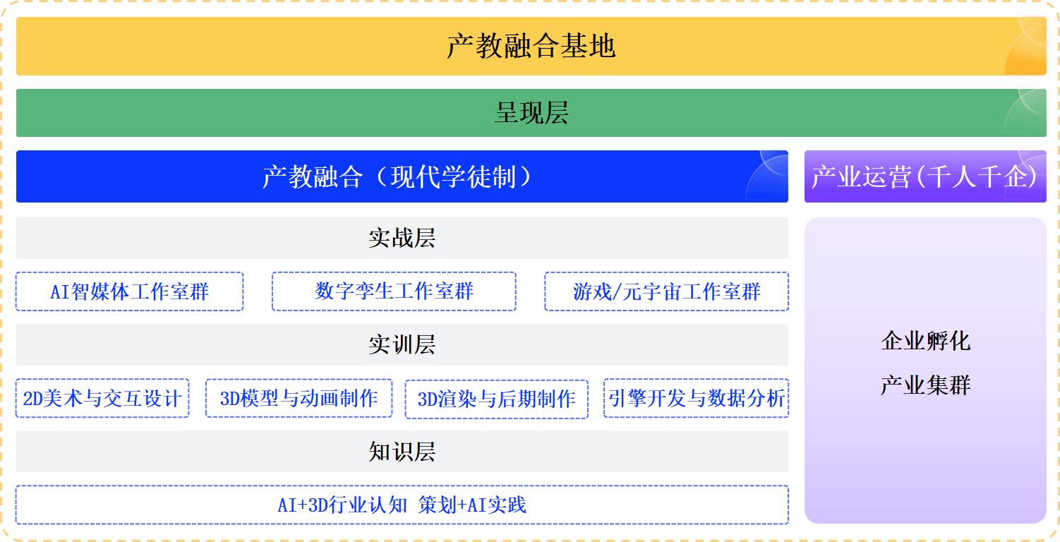作为产教融合领域骨干企业,融发数字秉持“以产业需求为导向,以人才培养为核心”的理念。紧扣职业教育“类型教育”定位,聚焦人工智能、智能体、数据分析等核心产业方向,依托 “双园融通,双境融合”人才培养模式,打破校园与产业园之间的资源壁垒,实现高校与企业“双主体”协同育人,以及产业需求与教学资源的精准对接。