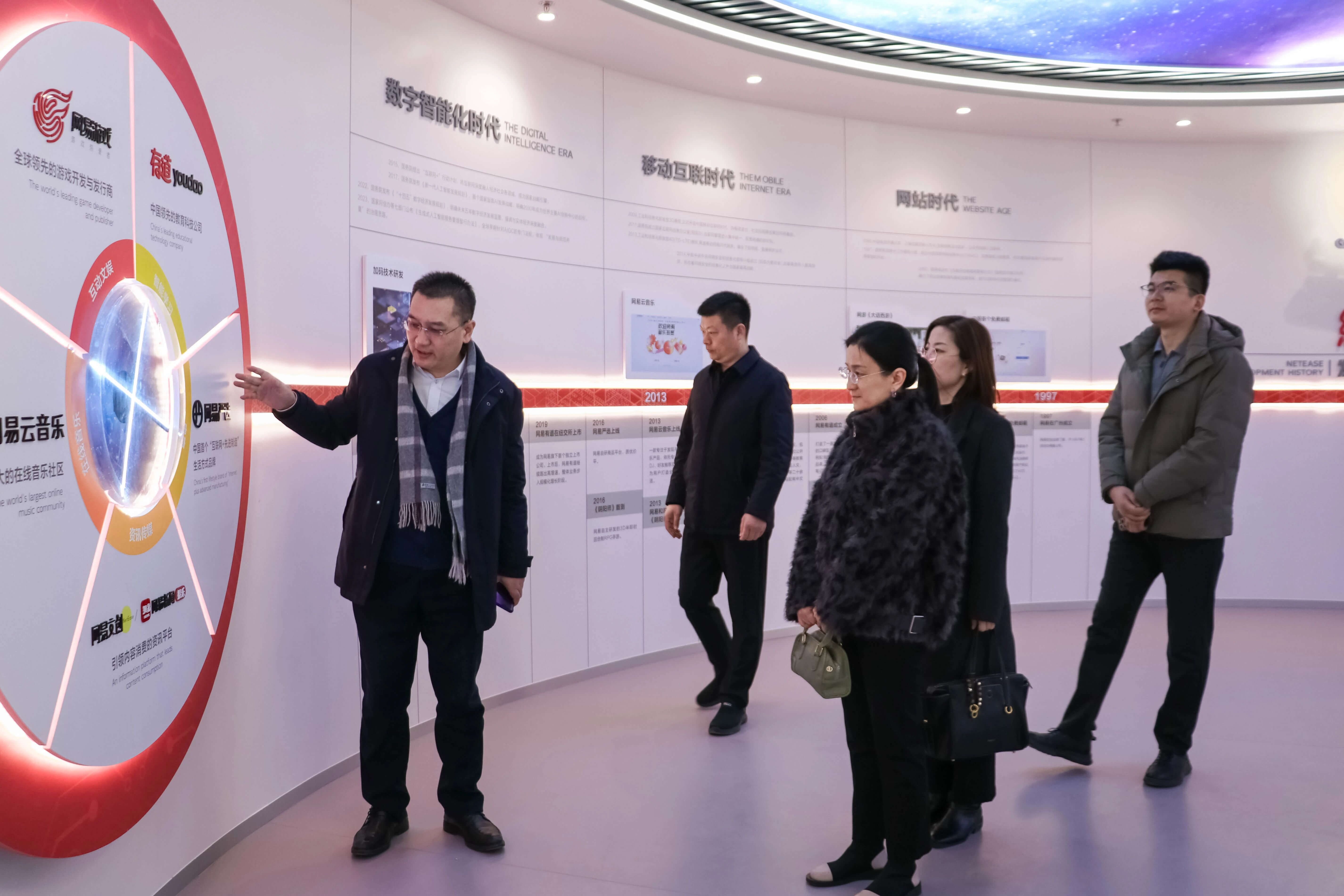 活动期间,校方还参观了济宁职业技术学院校内交付中心和网易融发数字内容生产中心(基地),基地负责人毛新全陪同介绍。本次参观,校方系统了解基地独具特色的“4321”人才培养模式,该模式构建以“知识层—实训层—实战层—呈现层”为核心的四层能力递进体系,聚焦专业技能、认知能力与通用素质三大维度,贯通校园教学与产业园实践双场景,通过企业化标准运营,实现人才培养与产业需求无缝对接。基地聚焦“AI + 3D图形学”方向,深度融合产业技术,为头部企业提供数字孪生、数字游戏、AI智媒体等服务。