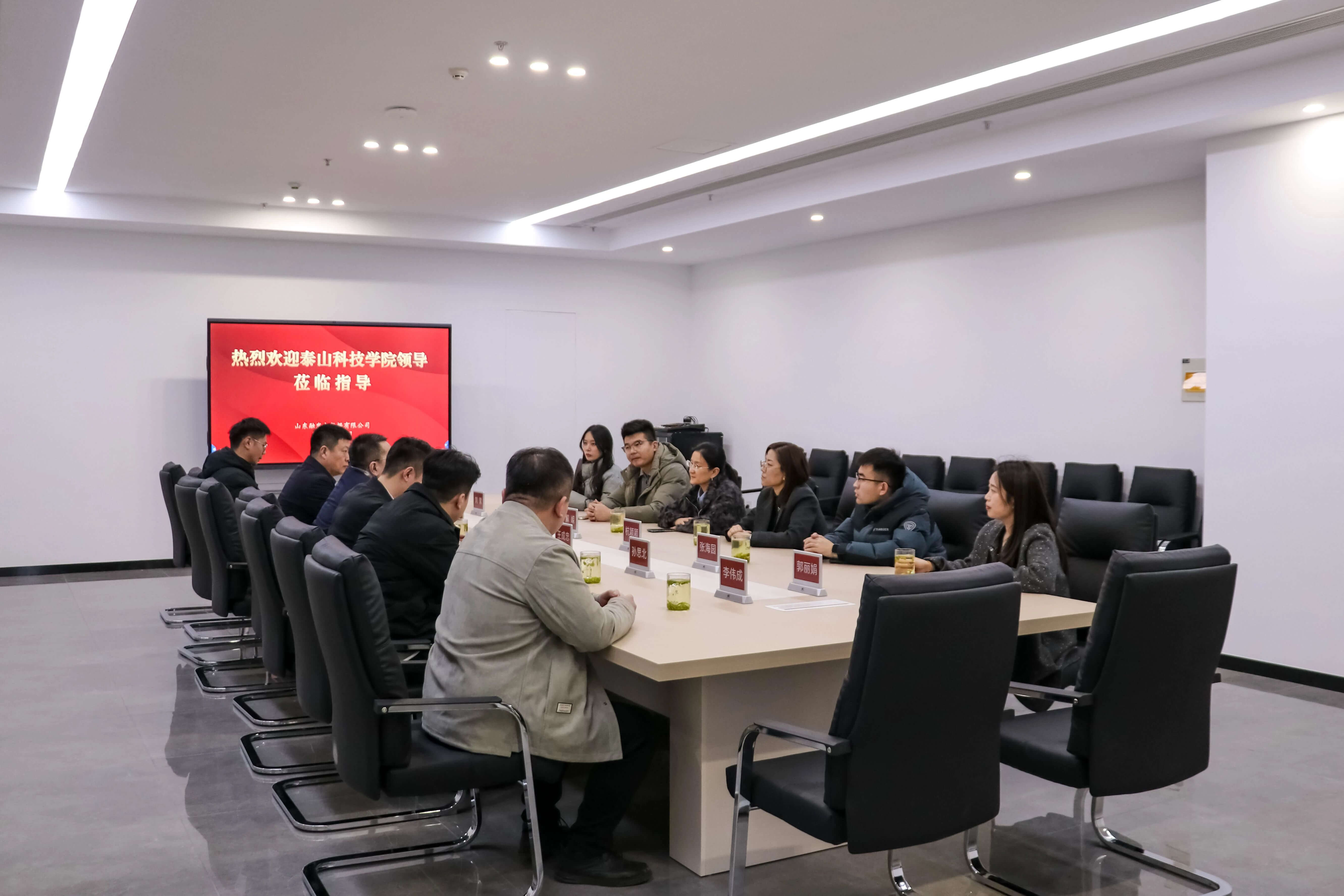 在座谈环节,双方围绕产业学院运营、人才培养方案、资源共享等议题深入探讨并达成多项共识。张振龙表示,企业将全力提供资源支持。解嵘介绍了学校发展特色,强调将以产业学院为纽带精准对接产业需求。杭颖颖就人才培养标准、实训基地建设等与企业达成共识。项目经理李伟成汇报了管培生培养成果。
